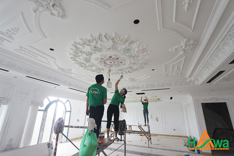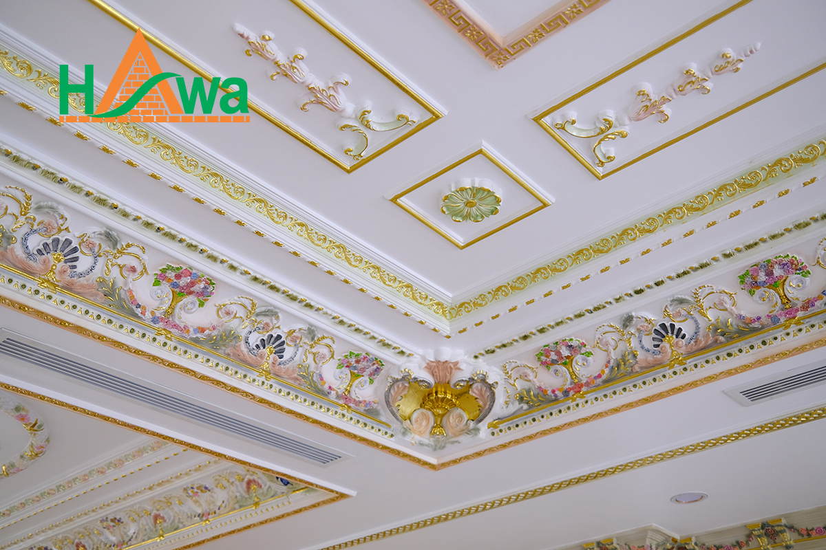 - Dát vàng/Vẽ vàng: Phào PU bắt sơn cực tốt, giúp lớp dát vàng sáng bóng, sang trọng.